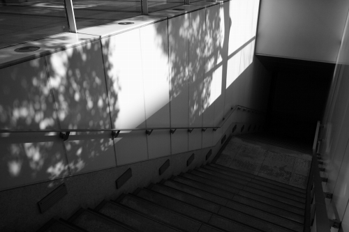 木漏れ日の光が差し込む地下への階段。