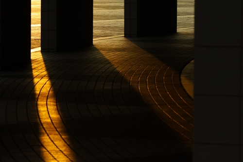 人工的なコンクリート、ガラス、そこに映る空と光。