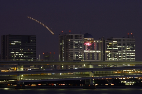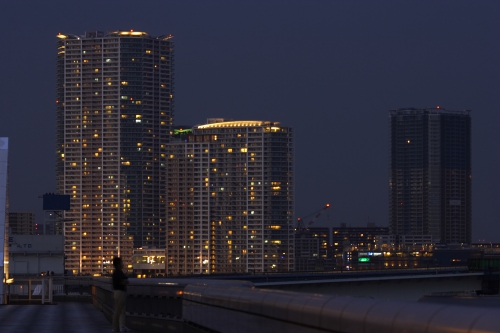 豊洲のあたりの高層マンションの灯りが