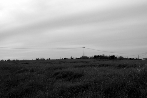 草原と電柱が、不思議な雰囲気を作り出している。