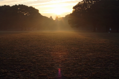 夜明け前の公園は