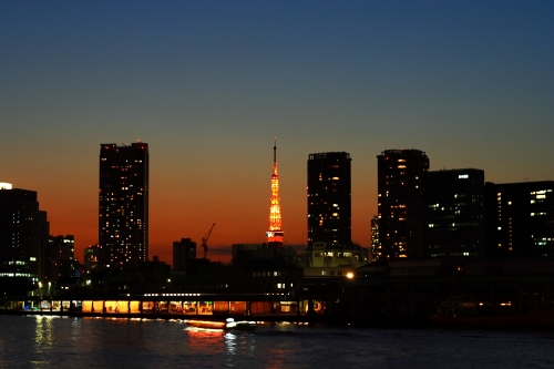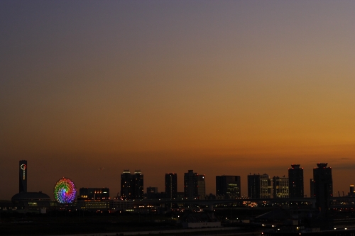 昨日に引き続き、夕暮れの街。 ダイナミックな空のグラデーションに 橋が浮き上がる。 レインボーブリッジ この写真にビビッときたら クリック お願いします。