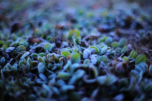 早朝の霜が降りた草です。