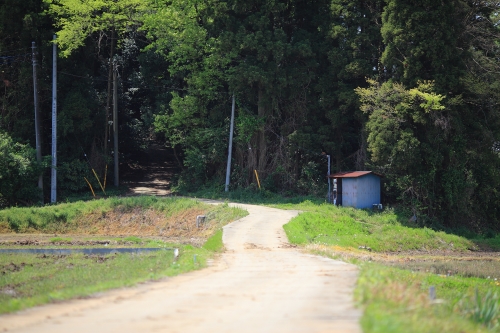 田んぼに囲まれた道。